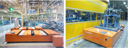 AGV與自動化輸送系統(tǒng)對接完成物料交換