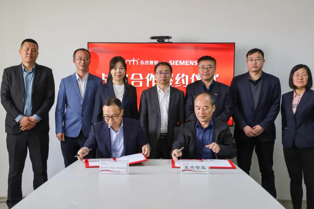 2023年4月11日,東杰智能與西門子簽訂戰(zhàn)略合作備忘錄,雙方將升級在智能生產(chǎn)、智能物流領域的數(shù)字化合作,致力于全球制造工廠基于物流系統(tǒng)的數(shù)字化轉(zhuǎn)型發(fā)展。西門子(中國)副總裁白利平、東杰智能副總經(jīng)理朱忠義分別代表公司見證了本次簽約儀式。
