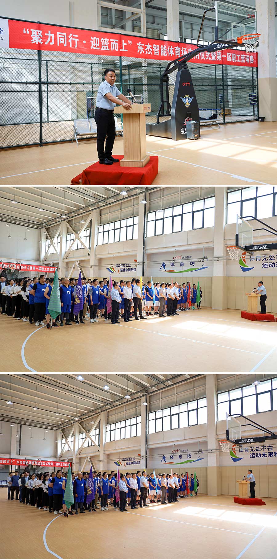 近日,一場(chǎng)盛大的“聚力同行·迎籃而上”東杰智能體育場(chǎng)啟用儀式暨第一屆職工籃球賽決賽在東杰智能總部體育場(chǎng)璀璨啟幕。活動(dòng)由集團(tuán)營(yíng)銷中心副總經(jīng)理侯晉雷先生主持,集團(tuán)總經(jīng)理王振國(guó)先生攜高管團(tuán)隊(duì)——副總經(jīng)理朱忠義、郝志勇,董事會(huì)秘書張新海,以及總經(jīng)理助理劉云峰等親臨現(xiàn)場(chǎng),共同見證了這一歷史性時(shí)刻。