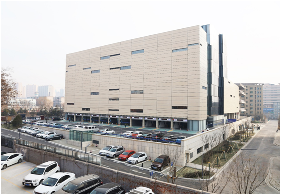 學(xué)府智能停車樓位于塢城路與學(xué)府街交叉口西北角,該項目建筑面積17908.41平方米,總高度為38.75米,分為南北兩個庫,南庫停車層13層,北庫停車層11層,共計1204個停車位,其中機(jī)械停車位918個,室外停車位118個,商務(wù)樓地下兩層停車位168個。樓體設(shè)置11個相互獨立的進(jìn)口和出口,實現(xiàn)了獨立連續(xù)存取車輛。