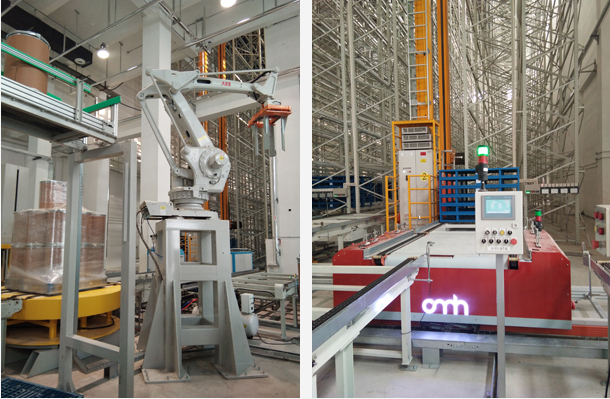 該項(xiàng)目從生產(chǎn)車(chē)間生產(chǎn)線(xiàn)末端將成品由激光導(dǎo)引AGV叉車(chē)自動(dòng)輸送至立體倉(cāng)庫(kù)完成入庫(kù),由機(jī)械手和伸縮皮帶機(jī)完成空桶的自動(dòng)入庫(kù)及成品的揀選出庫(kù)。整托盤(pán)成品由AGV完成裝車(chē)。項(xiàng)目由箱式輸送系統(tǒng)、機(jī)器人碼垛系統(tǒng)、庫(kù)前托盤(pán)出入庫(kù)輸送系統(tǒng)、貨架系統(tǒng)、堆垛機(jī)系統(tǒng)、托盤(pán)、WCS電氣控制系統(tǒng)、網(wǎng)絡(luò)通訊系統(tǒng)等組成。立體倉(cāng)庫(kù)符合GMP/FDA認(rèn)證標(biāo)準(zhǔn)。