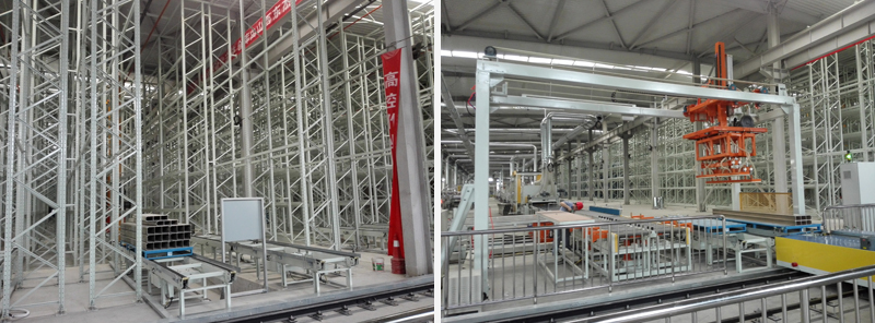 整個(gè)系統(tǒng)物流中心由貨架系統(tǒng)、堆垛機(jī)系統(tǒng)、托盤輸送系統(tǒng)、板材輸送系統(tǒng)、板材碼垛系統(tǒng)、板材外形及平整度檢測(cè)系統(tǒng)、激光噴碼系統(tǒng)、配套的電氣控制系統(tǒng)、WMS/WCS系統(tǒng)及硬件等組成。