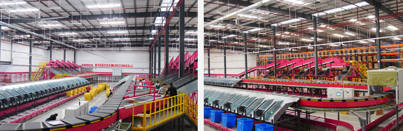 唯品會交叉帶智能分揀系統(tǒng)占地面積1000平米,分揀效率達(dá)每小時(shí)2萬件以上。由包裹輸送線、疊式皮帶分配系統(tǒng)、供包臺、交叉帶智能分揀主線、分揀格口、自動出倉系統(tǒng)等部分組成,是集機(jī)械、電氣、軟件為一體的先進(jìn)分揀系統(tǒng)。交叉帶智能分揀系統(tǒng)占地面積小、分揀效率高、人工投入少,是大型生產(chǎn)倉配中心、電商公司、快遞公司等提升行業(yè)競爭力、減少人工成本、提高倉配效率的選擇。